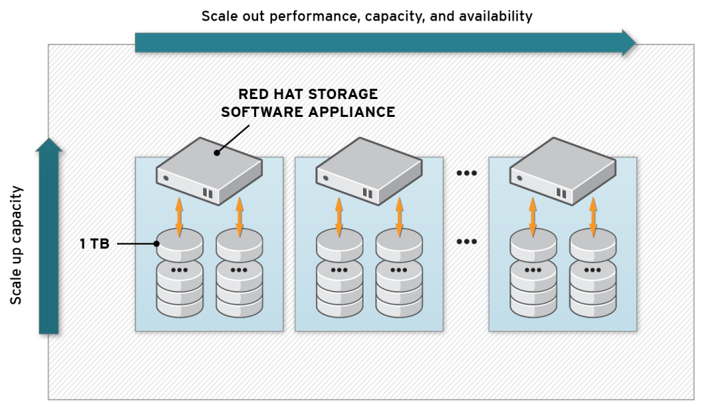 Deploys on Red Hat certified servers and underlying storage: DAS, JBOD.